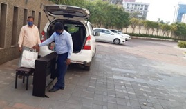 日本へ帰国した家庭からお預かりした電子ピアノをインド人の生徒さん宅へ届けてくれたドライバーさんたち(左)