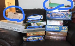 子どものおもちゃを必要なものと寄付するものに分けるためスマホから指示(右)