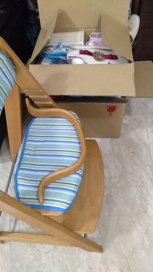 事前に、スマートフォンのビデオ通話を用いて、メイドさんに部屋の中を映してもらい、クローゼットや机の引き出しを一つ一つ開けながら、「捨てるもの」「必要なもの」「寄付するもの」に仕分けていきました。日本では、安価で手に入るキッチン用品、特にプラスチック製品が、インドでは高価であるため、メイドさんは「捨てるもの」の中からまだ十分使えそうなものをピックアップして、写真を送信してくることが数回ありました。同じマンションの他の家のメイドさんにお配りするなどして、なるべくゴミを減らすように努めてくれました。通常、メイドさんが働き先の家庭から何か物を持ち出す時には、それが窃盗品ではないということを証明するために、「ゲートパス」という証明書が必要です。メイドさんの氏名、日付、品名を書いた紙に雇い主がサインをします。