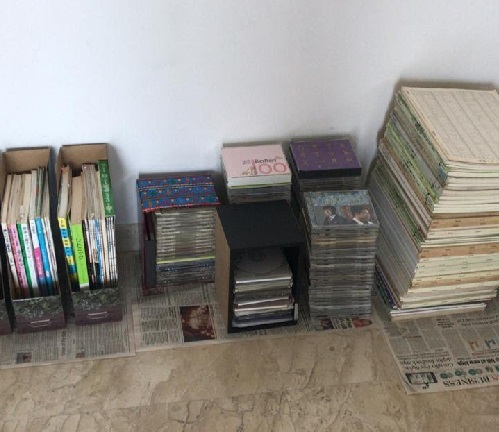 書籍や楽譜やCDなどを種類ごとにきれいに並べ、当日の箱詰めはスムーズに完了(右)