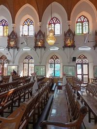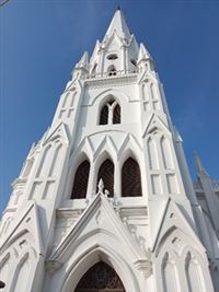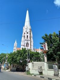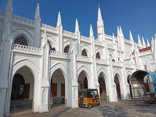 サントメ大聖堂: チェンナイには多くのキリスト教の教会があります。16世紀にはポルトガル人によって多くの教会が建設されました。イギリスにより植民地化された後にサントメ大聖堂が完成し、1986年には、当時のローマ法王も訪れています。この教会は、キリストの弟子の聖トーマスを弔う為に建てられたと伝えられています。中に入ると、奥行きがありステンドグラスを通して色鮮やかな太陽の光が降り注いできます。