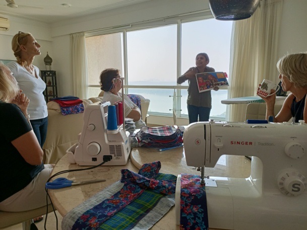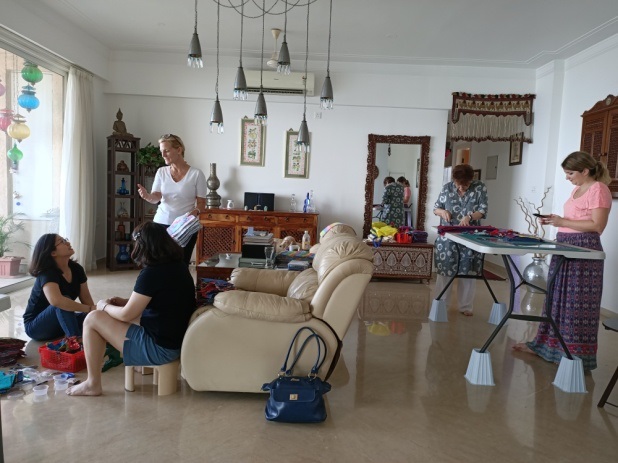 彼女の活動は、ムンバイ郊外の農村の学校を訪問し、女子に生理周期の説明と生理用品の使い方を教授するために、その生理用品キットを製作することから始まります。インド人を含む外国籍の女性ボランティア23名とともに、毎週木曜日の13:00~16:00の3時間、支部の代表者のご自宅に集います。
