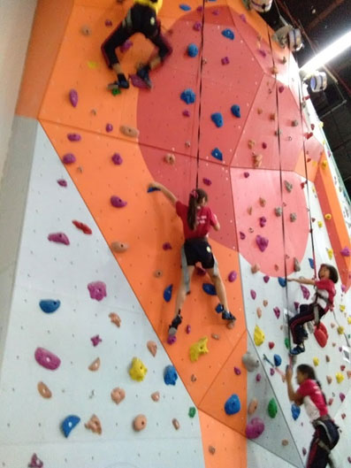 体育館は、バスケットボールのコートが4面とれる広さです。パーテーションで仕切ると2クラスが同時に授業を行うことができます。また、昨年、壁面にロッククライミングの設備が完成しました。我が家の娘は今まで郊外の有料施設に車で1時間以上かけてロッククライミングに出かけていたので、学校で挑戦することができるようになり、大喜びをしていました。